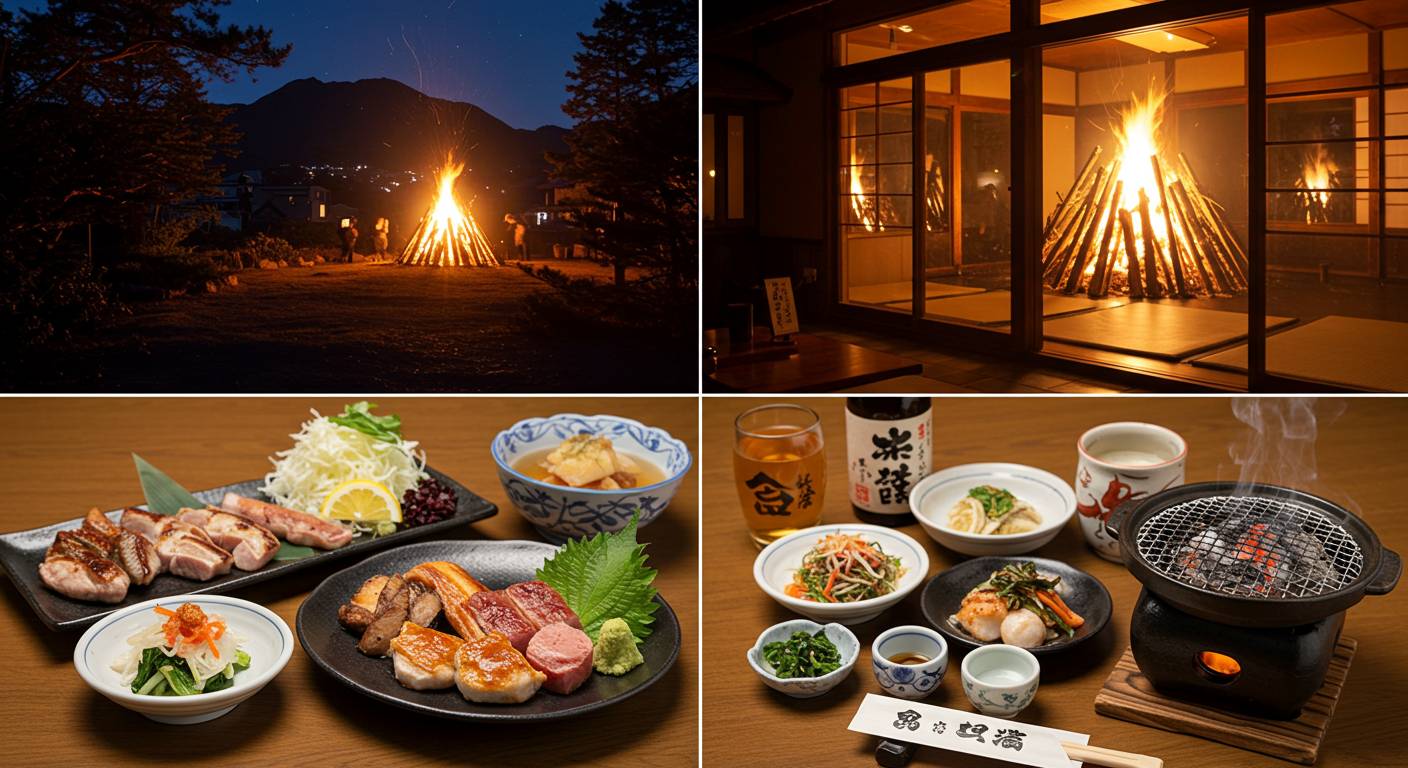 この記事では、大文字焼きの歴史や見どころはもちろん、その前後で楽しめる地元の夜グルメ、混雑を避けるコツ、おすすめの宿泊施設まで、まるっとご紹介。