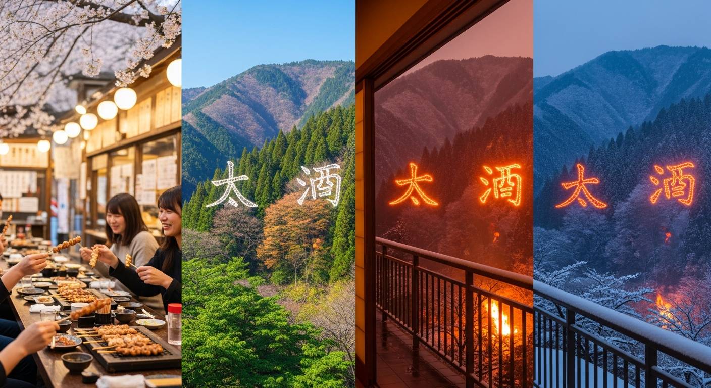 季節ごとに変わる強羅の表情と、それに合わせた焼鳥の楽しみ方や地酒との組み合わせなど、地元の人だからこそ知っている楽しみ方をご紹介します。春の桜、夏の緑、秋の紅葉、冬の雪景色…それぞれの季節でグルメの味わいが変化する理由や、大文字焼きを最高に楽しむコツも満載です。